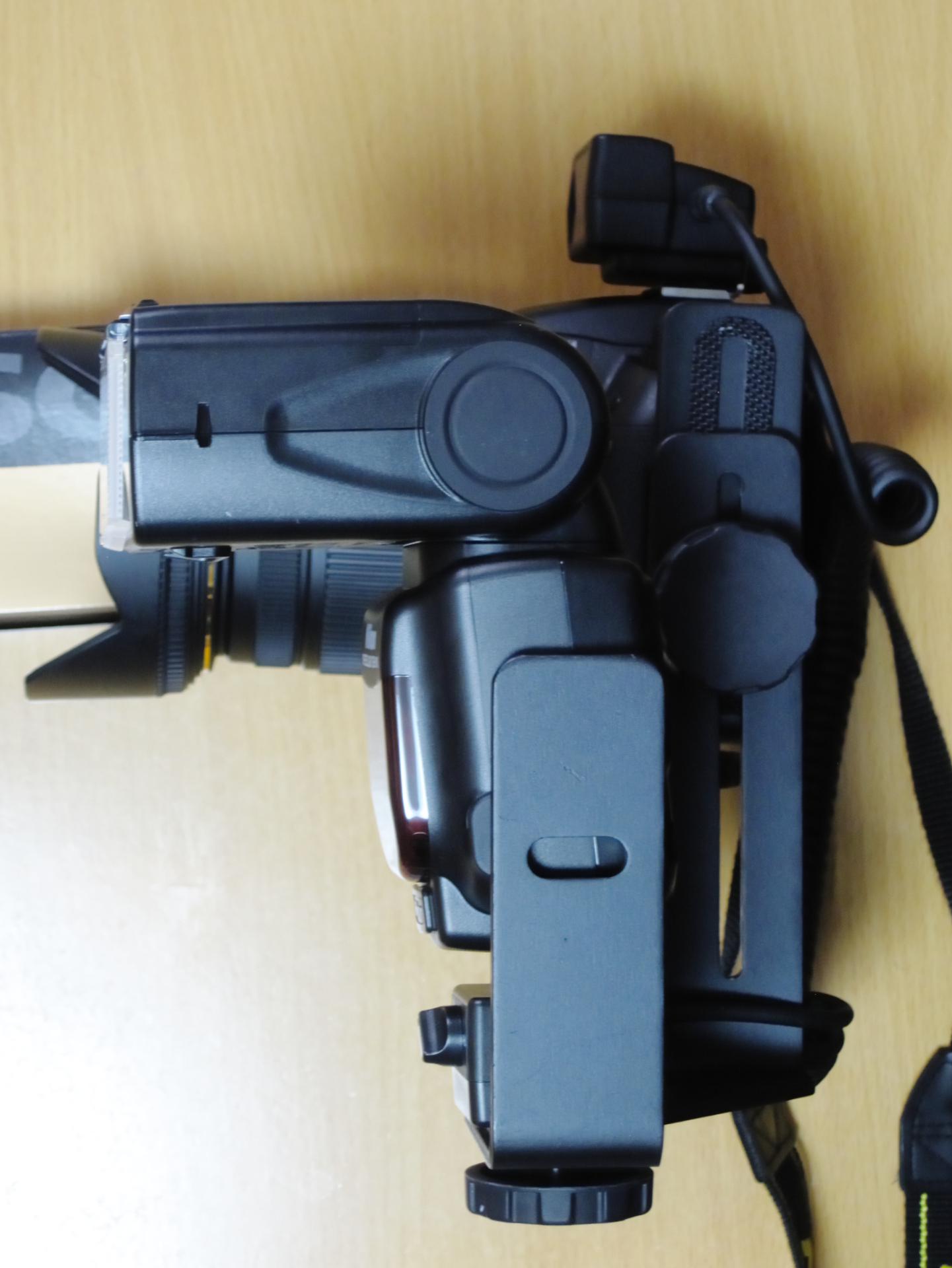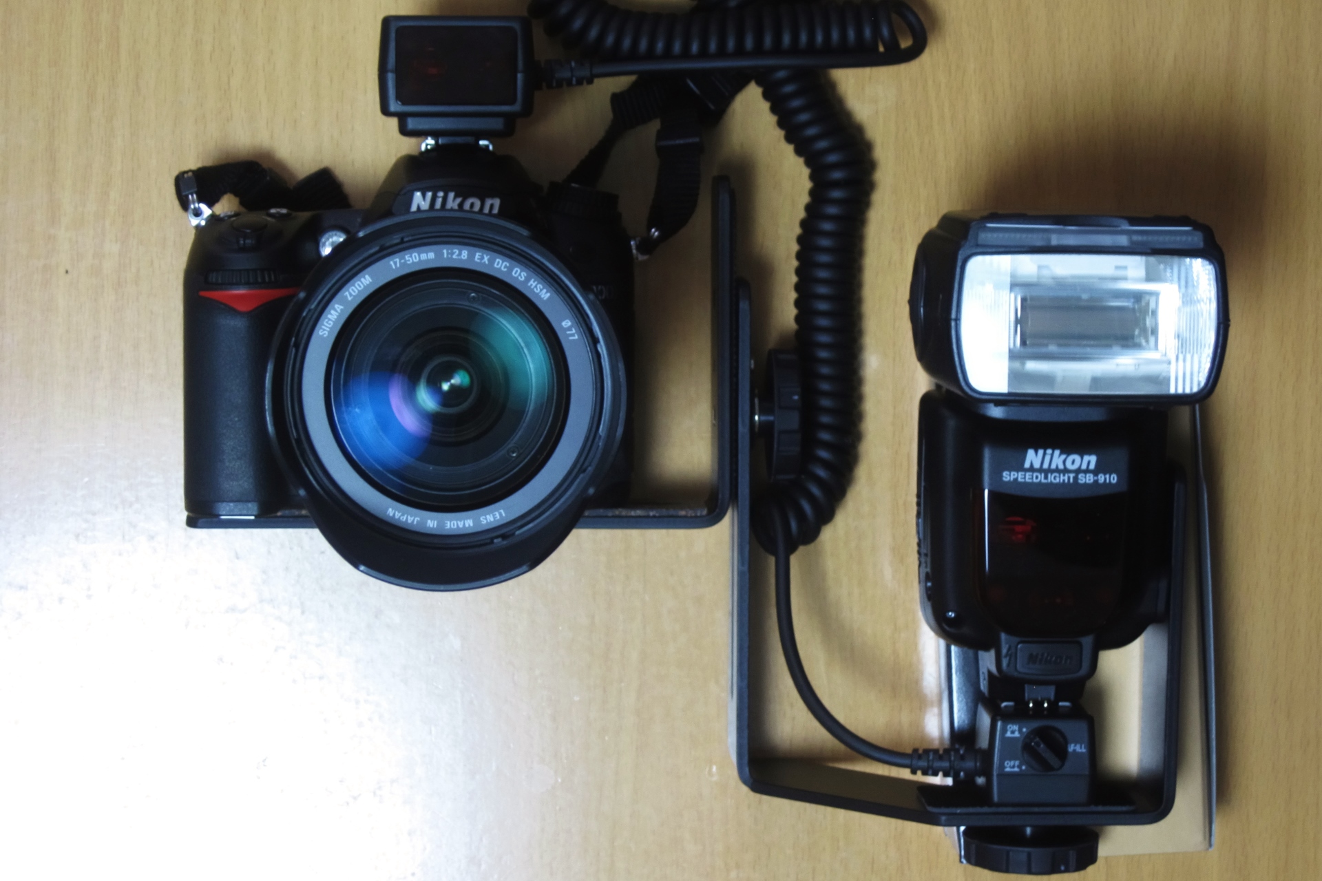 Nikonの場合、純正でSK-8Aという製品がありますが、私の場合D7000をMB-D11無しで使用したいので、どうしても縦位置の場合レンズの斜め上に光源が来てしまうため、スピードライトの位置を上下させられる製品を探すことにしました。