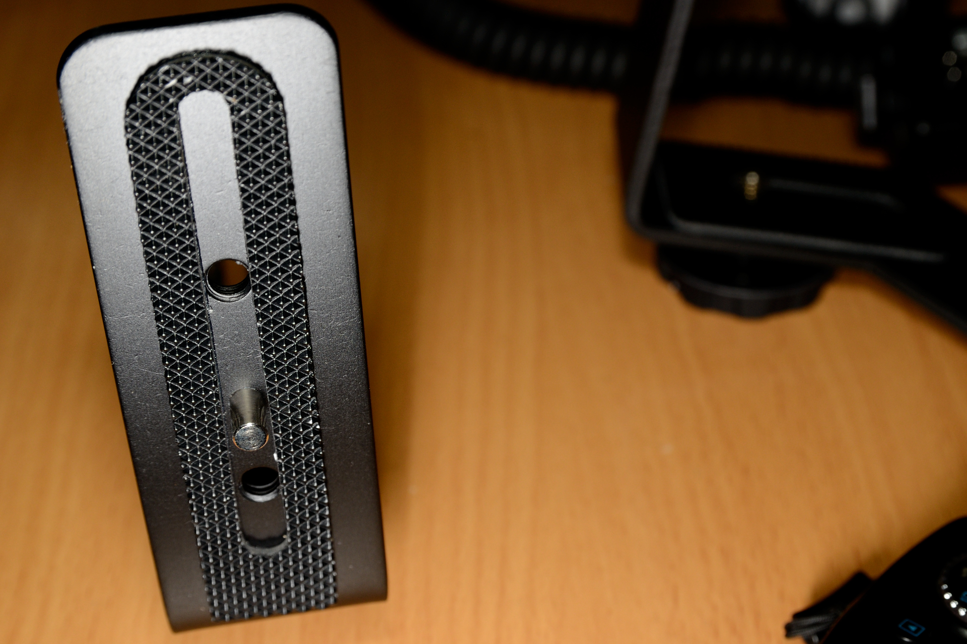 ボディ側のパーツ側面はこのようになっていて、上下どちらかにストロボ側のパーツのネジで固定するようになっています。上下の高さはストロボ側でフリーに決められる感じです。