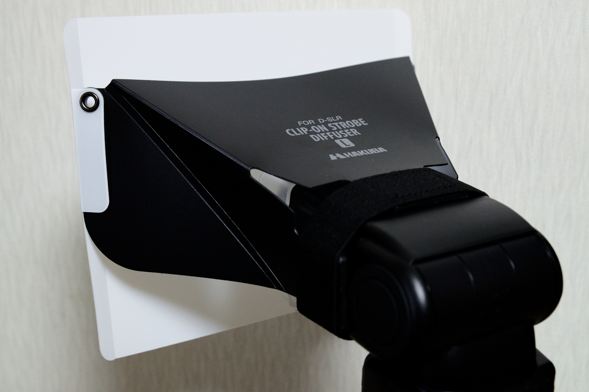そんな時の解決法というと基本的にはバウンスさせて光を当てることになりますが、天井の色が強く出てしまったり、天井が高い、 撮影場所が屋外など、バウンス効果が期待出来ないことも多いと思われます。